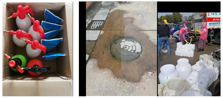 2月7日:1.對設備動力管理部大門、理化室、安化卡點、集貿(mào)市場、燈光球場進行消毒;2.園區(qū)巡查正常;3.在安寧新購置水桶后拉運消毒液600公斤;4.協(xié)助福保祥瑞公司完善復工復產(chǎn)期間的相關資料。
