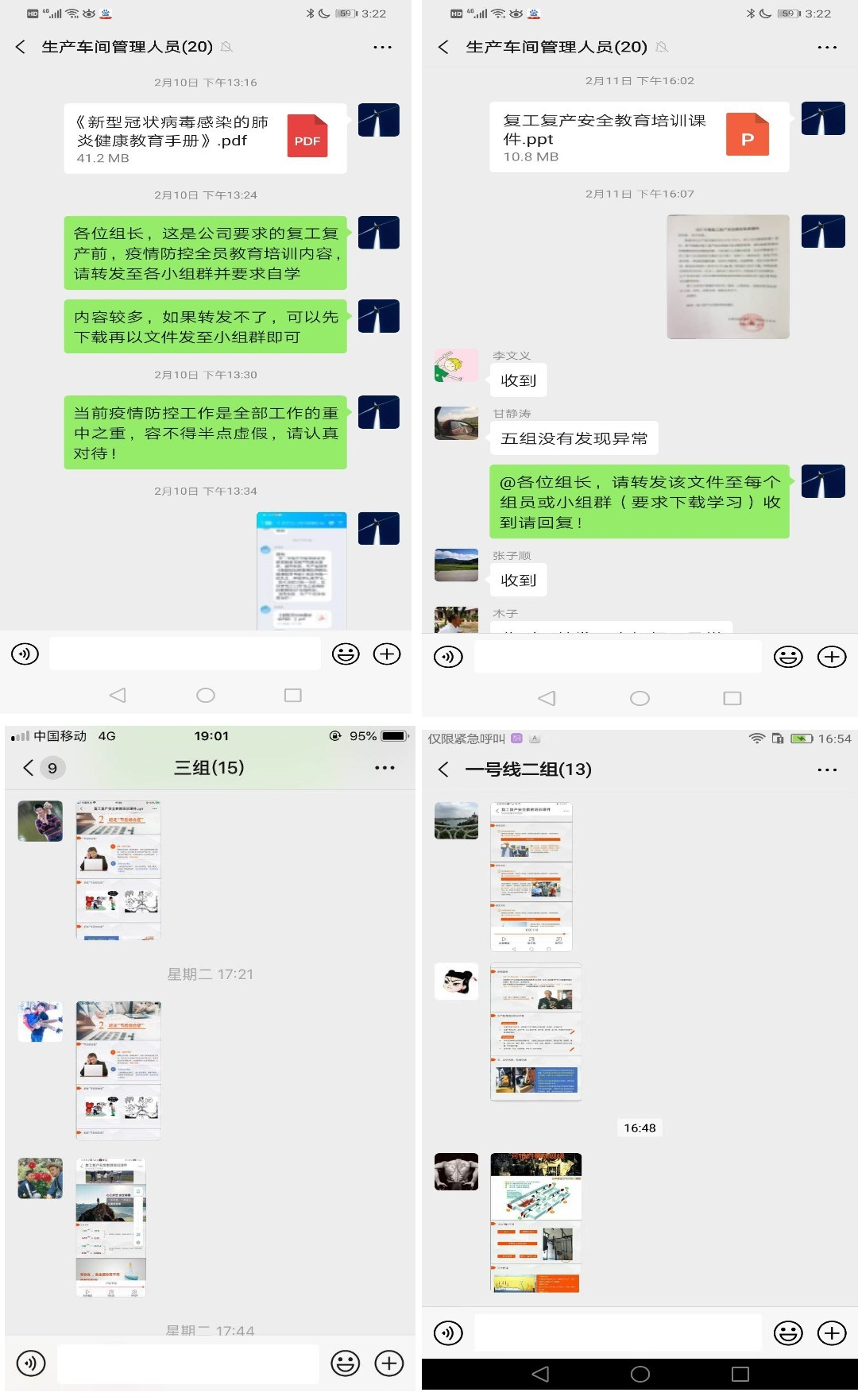 從員工返程摸排登記到進入車間的健康排查登記;從“疫情防控全員教育培訓”到“節(jié)后復(fù)工復(fù)產(chǎn)全員安全教育培訓”(利用網(wǎng)絡(luò)平臺);從每位員工的口罩發(fā)放到車間無死角的清潔消毒;從鍋爐點火供汽到水、油相的升溫配制;從原輔材料的備料轉(zhuǎn)運到一件件合格成品裝車入庫,不違疫時抓生產(chǎn),一幅幅復(fù)工復(fù)產(chǎn)的圖景井然有序地徐徐展開......。