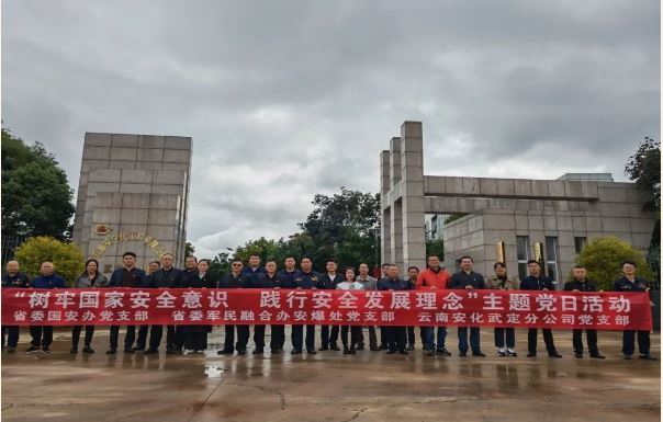 2023年10月13日,中共云南省委國安辦黨支部、省委軍民融合辦安爆處黨支部與安化武定分公司黨支部在武定分公司聯(lián)合開展“樹牢國家安全意識,踐行安全發(fā)展理念”主題黨日活動。中共云南省委國安辦黨支部、省委軍民融合辦安爆處黨支部、武定縣工業(yè)信息化商務(wù)科學(xué)技術(shù)局、安化公司班子成員、武定分公司黨支部共計30余名黨員參加活動。