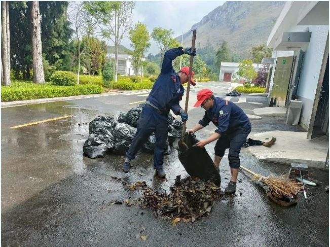 公司組織清掃隊(duì)伍對(duì)屋頂?shù)穆淙~進(jìn)行全面清掃,消除了因落葉堵塞排水口而引發(fā)的屋頂積水安全隱患,并對(duì)發(fā)現(xiàn)的管道堵塞點(diǎn)進(jìn)行清理疏通,確保屋頂?shù)呐潘到y(tǒng)暢通。同時(shí)清理了溝道內(nèi)的垃圾和淤泥,確保溝道無阻。