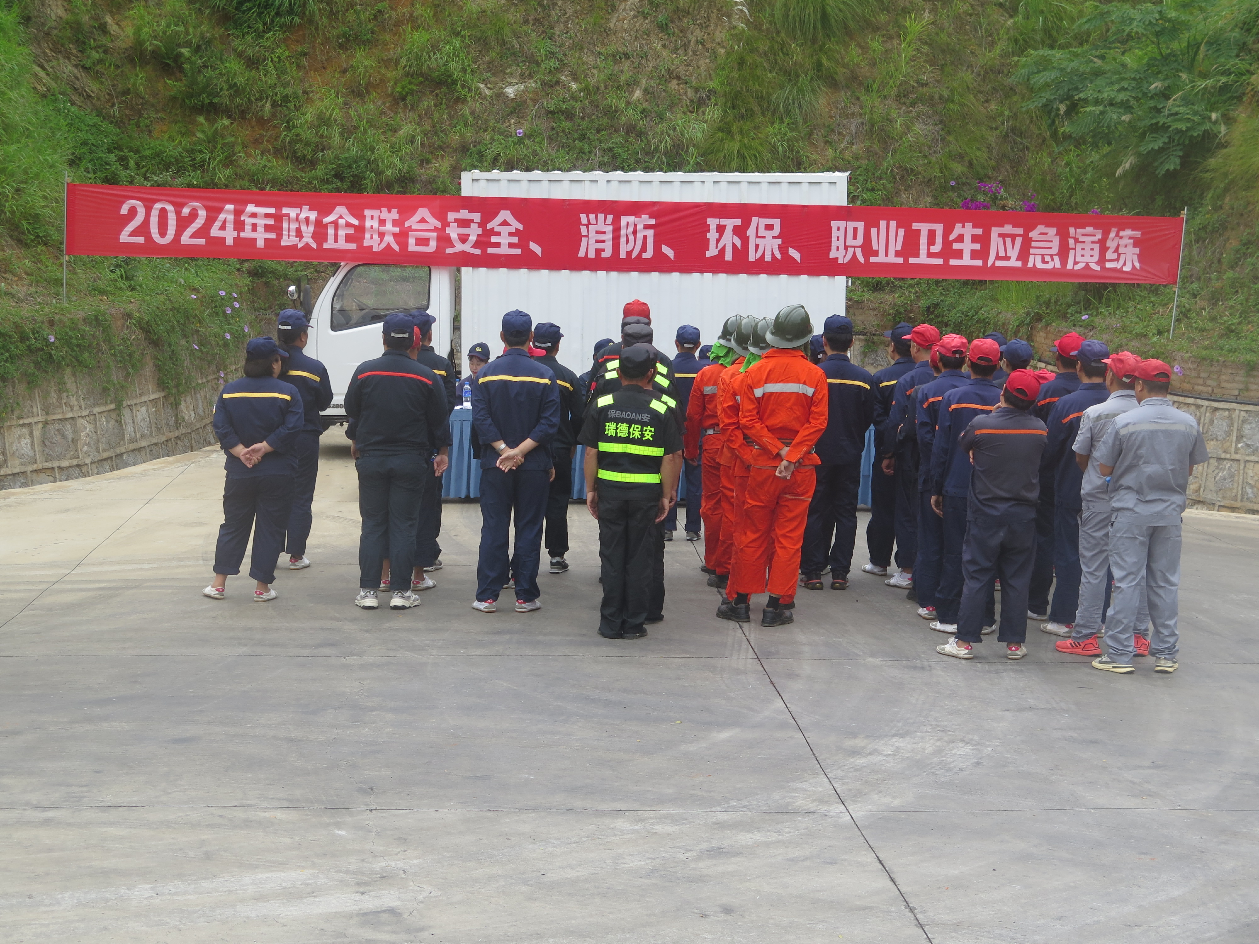 2024年6月25日,紅河州工業(yè)和信息化局、開遠市工業(yè)商務和信息化局、云南安化有限責任公司開遠分公司、內蒙古瑞德保安服務有限公司聯(lián)合組織開展2024年度政企聯(lián)合安全、消防、環(huán)保、職業(yè)衛(wèi)生應急演練。