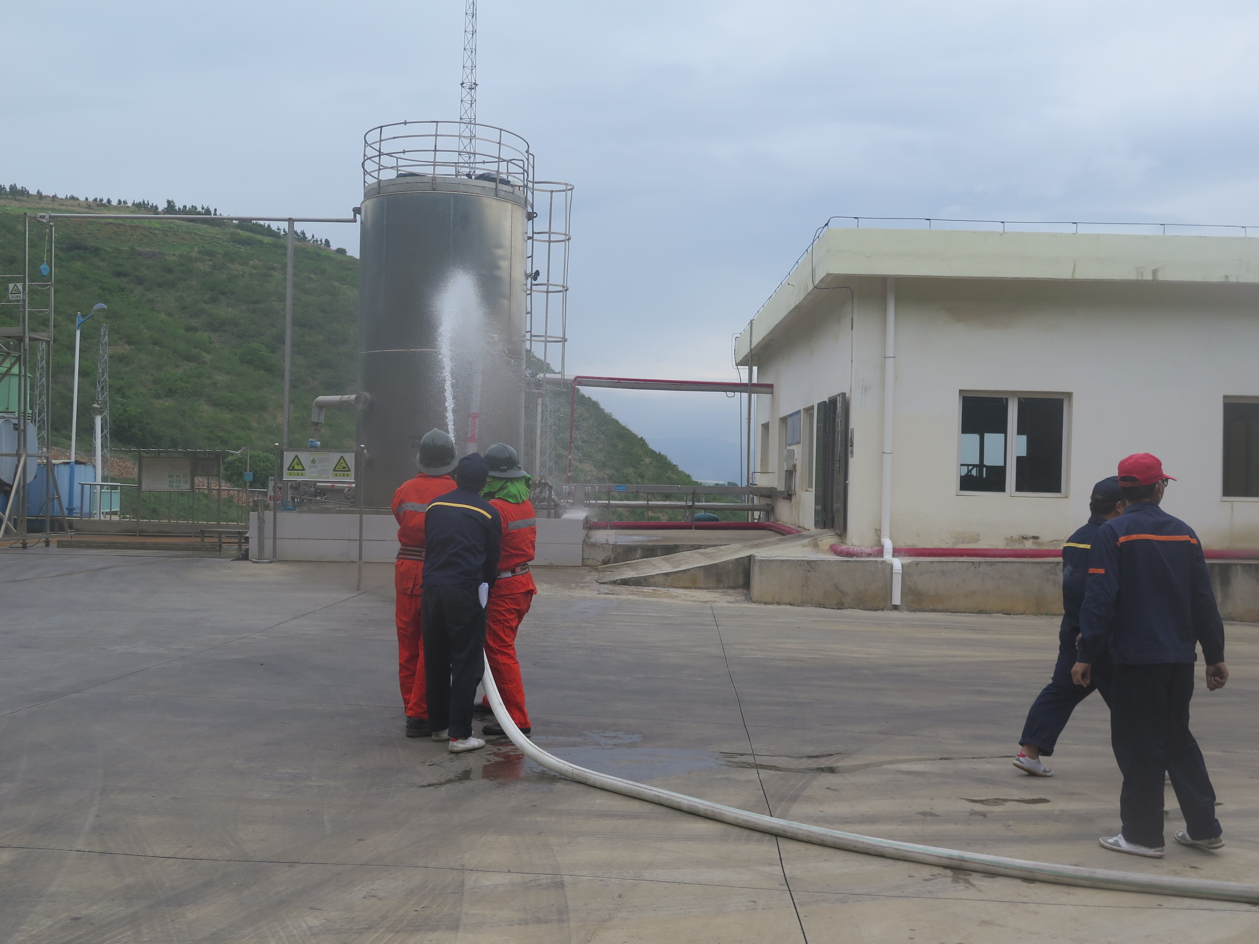 此次演練以開遠分公司膨化硝銨炸藥生產(chǎn)線水油相制備工序硝酸銨溶液儲罐內硝酸銨溶液熱分解起火為背景。演練前,開遠分公司組織全體員工學習演練方案,并要求全體員工提高安全意識,防患于未然,確保演練安全、有序。演練過程中各演練小組各司其職、井然有序,響應迅速,配合緊密。