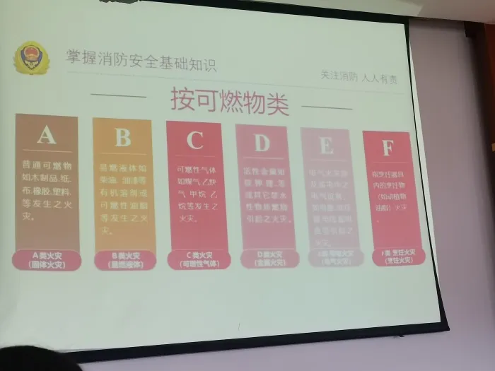 培訓會上,消防培訓師向大家詳細講解了有關消防安全知識的內容、演示滅火器的使用方法、傳授逃生自救技能等。同時通過引用觸目驚心的真實案例,給大家播放震撼人心的火災現場圖片和視頻,讓參訓人員了解防火工作的重要性和嚴峻性,增強了消防知識的學習和掌握。